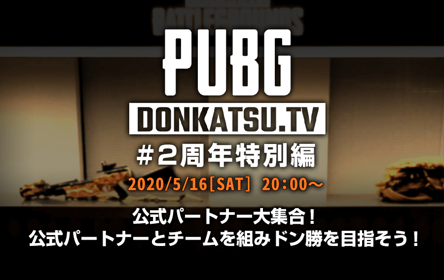 『PUBG MOBILE』日本リリース2周年を記念した 「DONKATSU.TV 2周年特別編」を2020年5月16日(土)20時より生配信いたします!