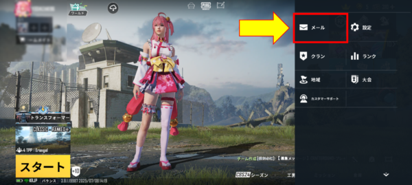 2.メールよりアイテムを受け取り